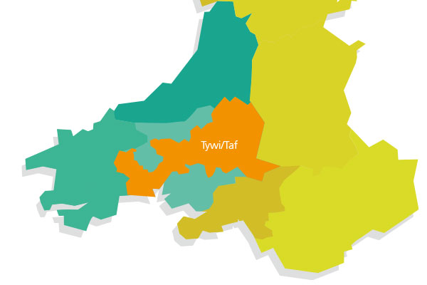 Mae ardal Tywi/Taf yn disgrifio llawer o orllewin a gogledd Sir Gaerfyrddin. Mae hyn yn cynnwys tref sirol Caerfyrddin yn y canol, cyn belled i'r gorllewin â Hendy-gwyn ar Daf, y tu hwnt i Lanymddyfri yn y gogledd, ac arfordir deheuol y sir cyn belled i'r dwyrain â Chydweli.